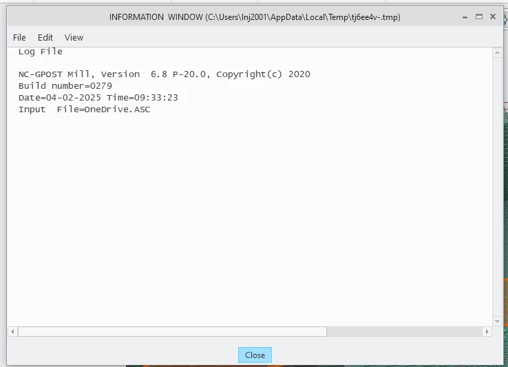 I am in Creo Parametric 9.0.8.0. I am attempting to generate an MCD in Creo NC. I am able to generate an NCL file with no issues. However, when I try to generate an MCD file, after all of the prompts, I check my working directory and there is no file for the g-code output. I have attached an image of the log. Am I missing something here?