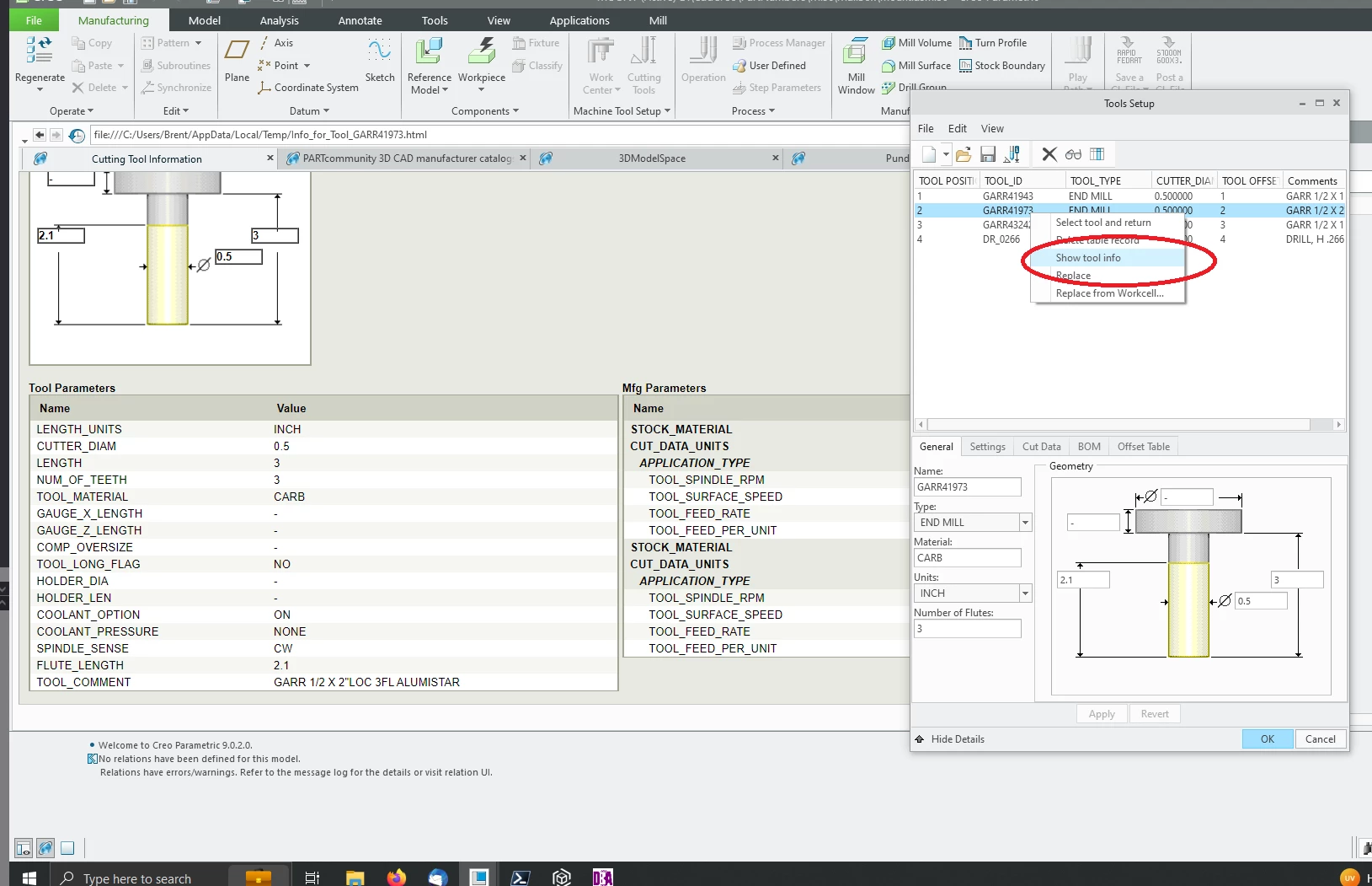 How do I remove the errors Tool parameter TOOL_ROUGH_SPINDLE_RPM (used in relation): value undefined. and Tool parameter TOOL_ROUGH_AXIAL_DEPTH (used in relation): value undefined.