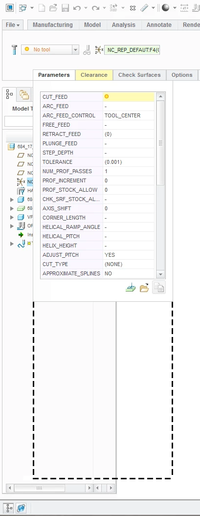 In Creo NC, using Machine Tool Setup -> Parameter UI, I have edited the list of basic parameters visible in the "Parameters" list of NC sequence edition.