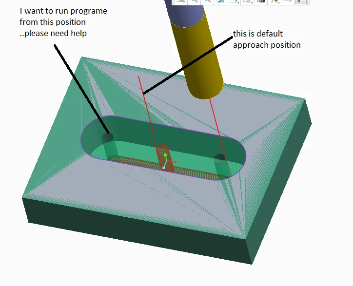 ◦ Sketch—Sketch theapproach(exit) path for the tool in the XY plane of the NC Sequence coordinate system. Theapproachpath must finish (and the exit path—start) so that the tool lies completely inside the area of the cut.
