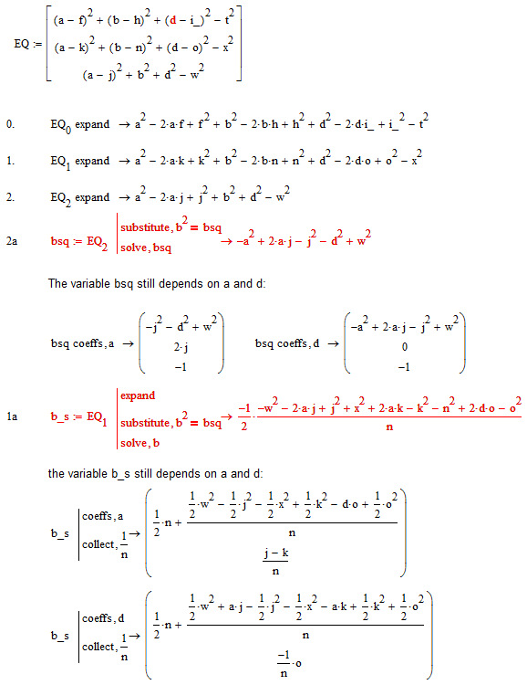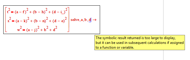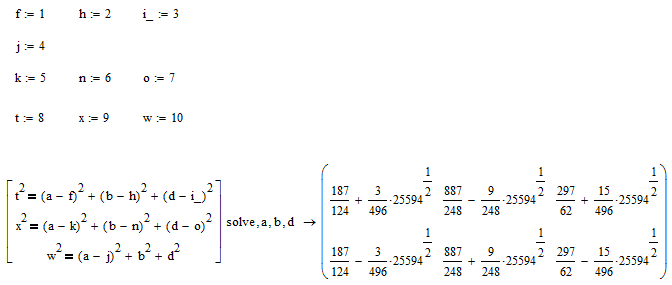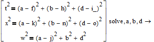 I need to get the formulas, a, b, d only in function of the given variables. So a symbolic solution someway like that: