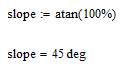 In my calculation I would like to define the slope in %, and calculate in the furhter sheet with the correct result in degrees (e.g. 100% slope should be 45°).