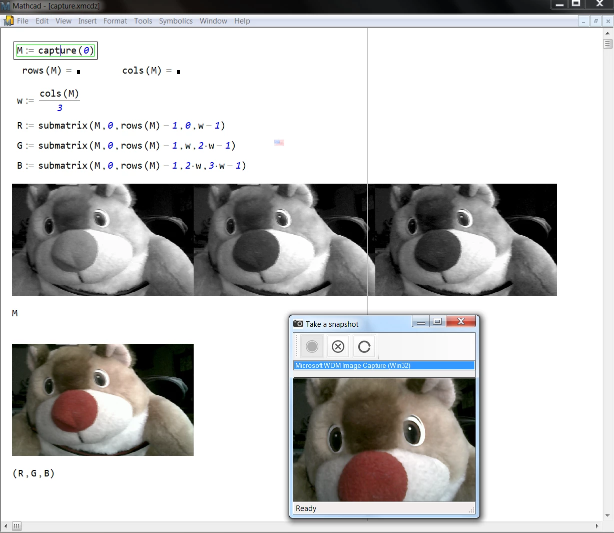 written a user defined function(.dll function) as a Visual Studio Project, to access at the usb port of my computer in order to aquired image data by reading over the camera at a time rate of x seconds (x could be a variable defined by the user) and stored as a matrix.