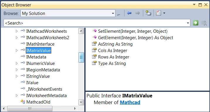 What I want to do is in the opposite direction: I want to know if it is possible to call a function, previously builded in Visual Studio, from Mathcad and then be able to manipulate the data gathered from that visual Studio function in a mathcad worksheet.