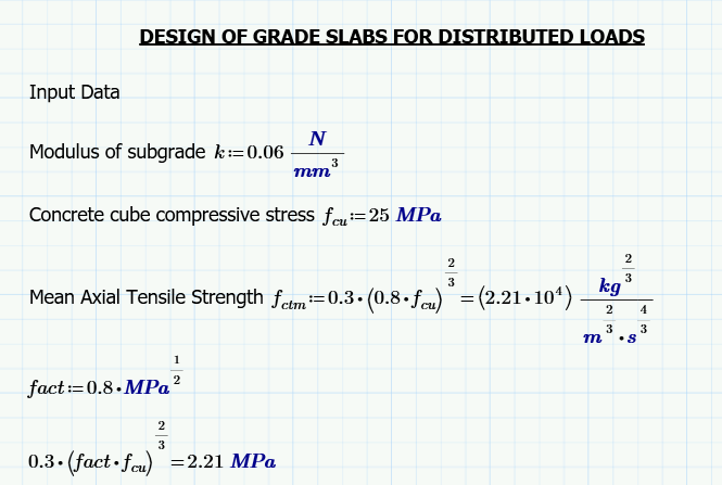 Attached is an mcdx file. I have an issue with the units. I'm expecting the units for fctm to be in MPa. But Mathcad does not seem to be in agreement. If I remove the 2/3 from the equation then the units are OK. Kindly help.