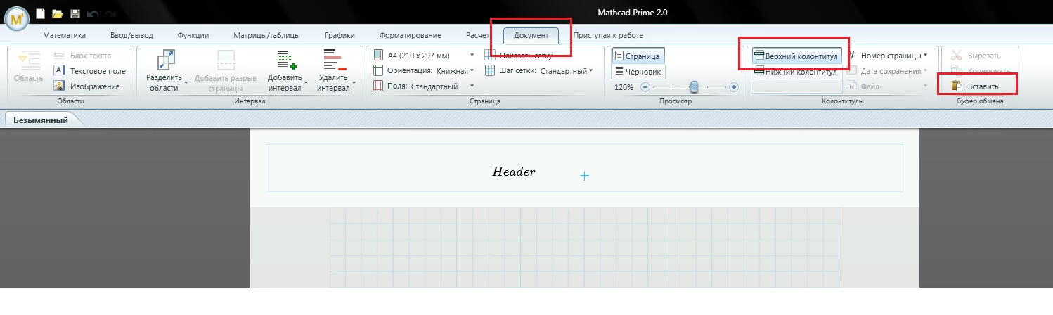 can i insert my own header created in excel to Mathcad Prime 2.0?