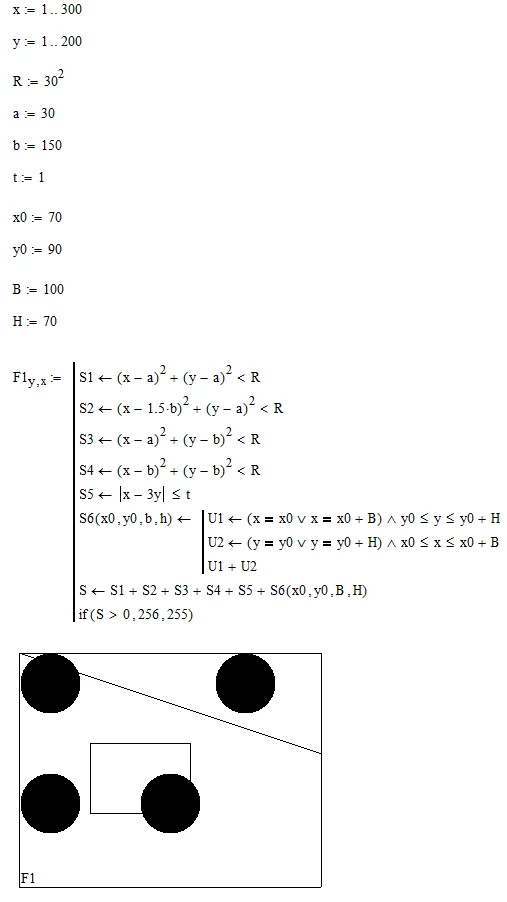 Is your intention to actually see for instance the x-coordinate "a=30" of the circle center written pixelwise in the picture matrix?
