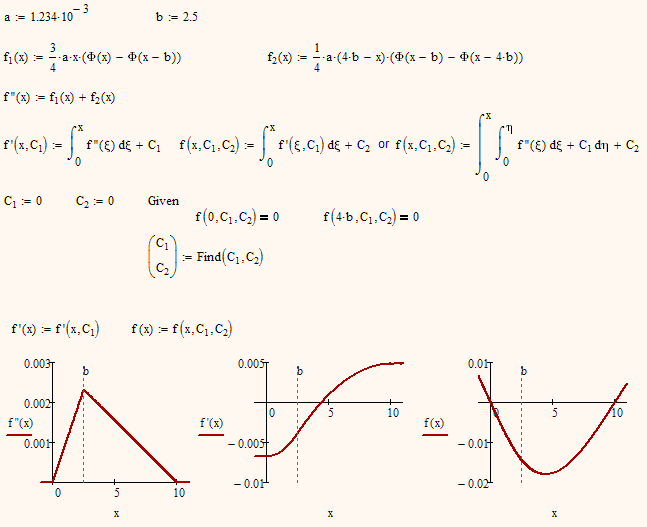 determine the two functions y1 and y2, solutions of the following two differential equations, being known the initial conditions and of continuity (the two functions, in reality, constitute the two arms of the same function but defined in two different and adjacent intervals. In the point common to the two intervals, it is required the continuity of the function (equality of the derivatives in b).
