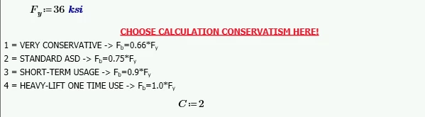 I am trying to write out the correct If statement that would calculate the Fb value depending on the user selected C value for whichever conservation criteria they choose. I have defined Fy and C and this Fb calculation would be down below this area to feed into further calculations in the document.