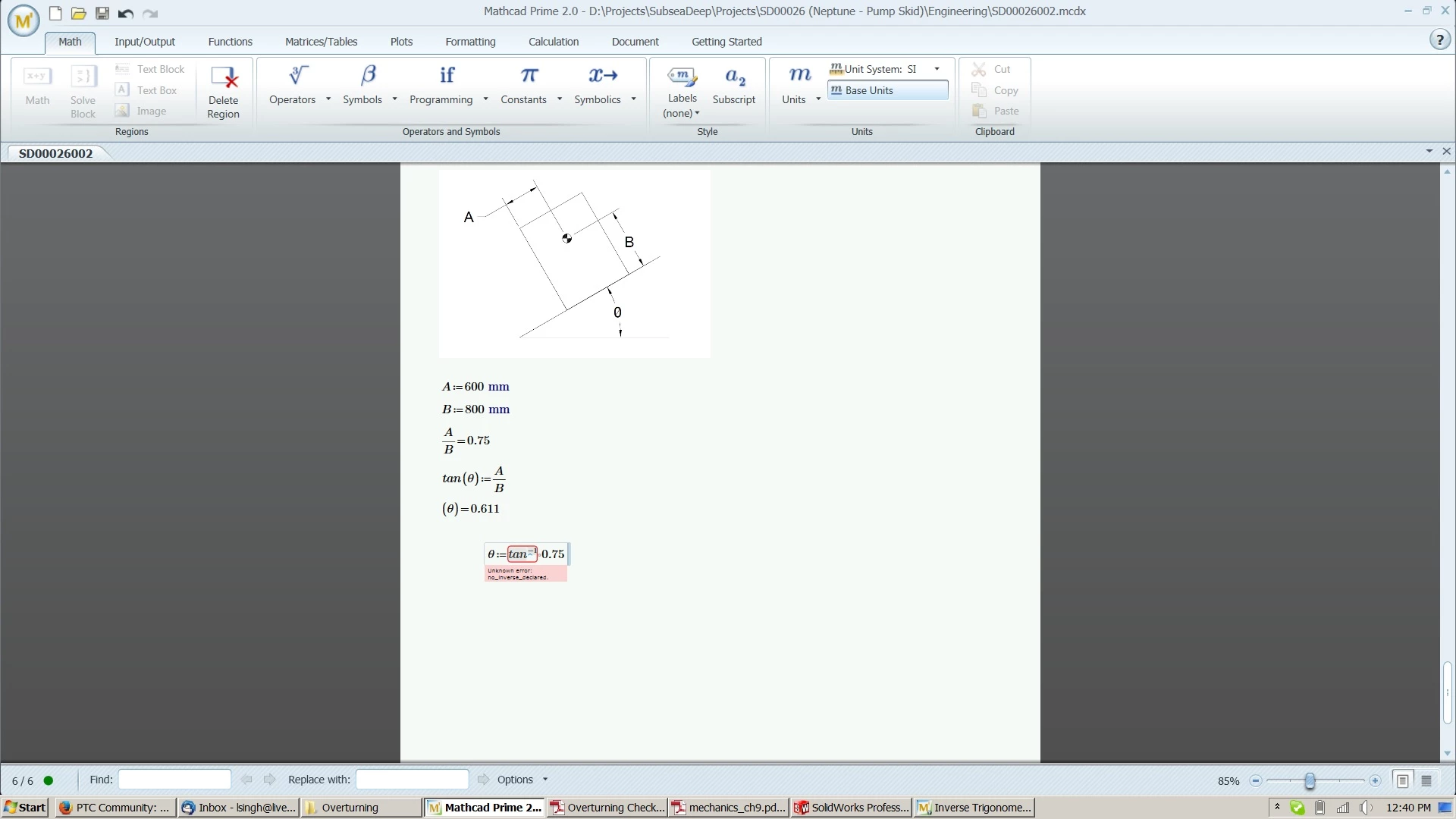 In MathCAD Prime 2 I am trying to write inverse of tan to get the value of theta. Please see attached.