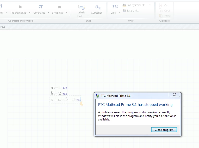 Mathcad Prime 3.1 Crashing
