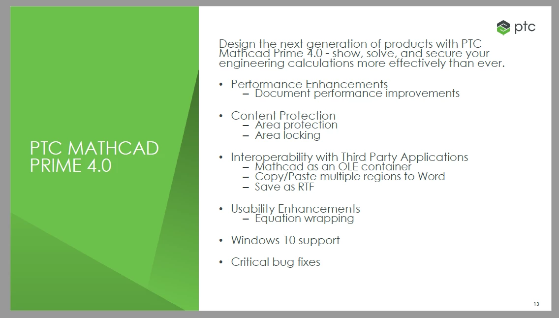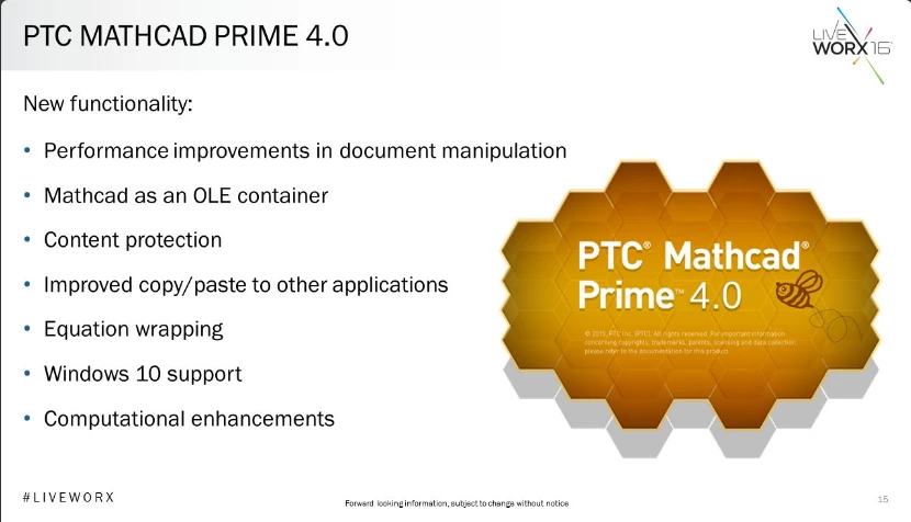 At the last event "PTC LiveWorx Europe 2015" in November of 2015 it was presented a roadmap for the development of Mathcad Prime 4.0 and some future steps (themes) for Prime direction. Let's see what updates are planned for version 4.0 (now the release of version 4.0 is scheduled for the 4th quarter of 2016 year) and is scheduled for subsequent releases after 4.0. PDF "PTC Mathcad Roadmap_2015" can be found in attachment.