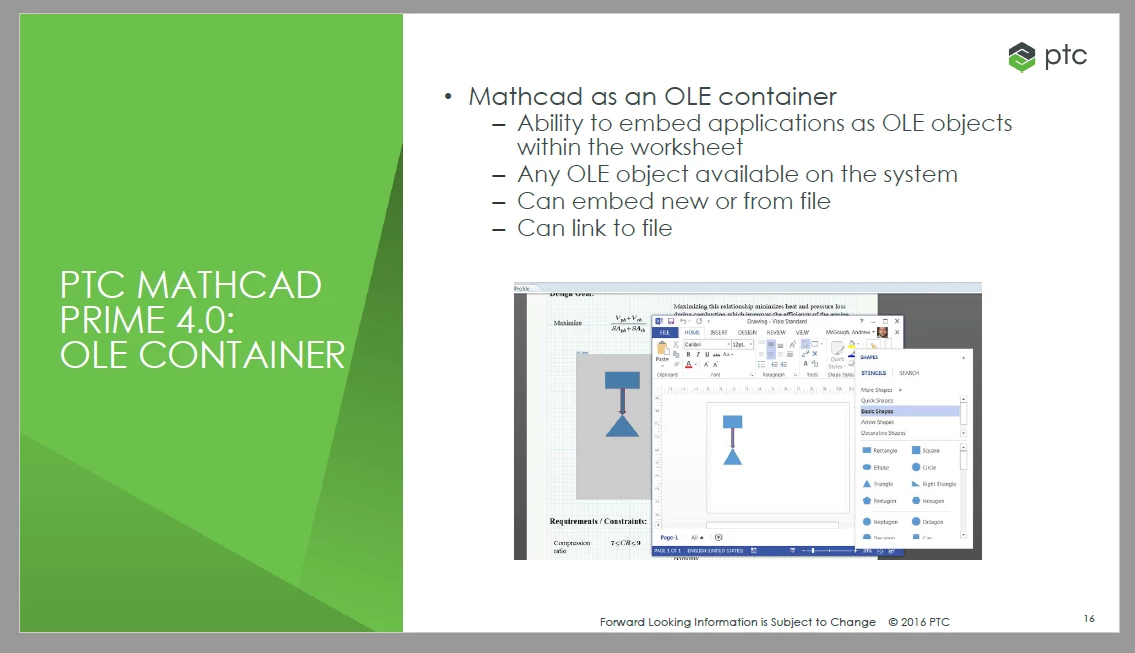 2. Mathcad as an OLE container: ability to embed applications as OLE objects within the worksheet.