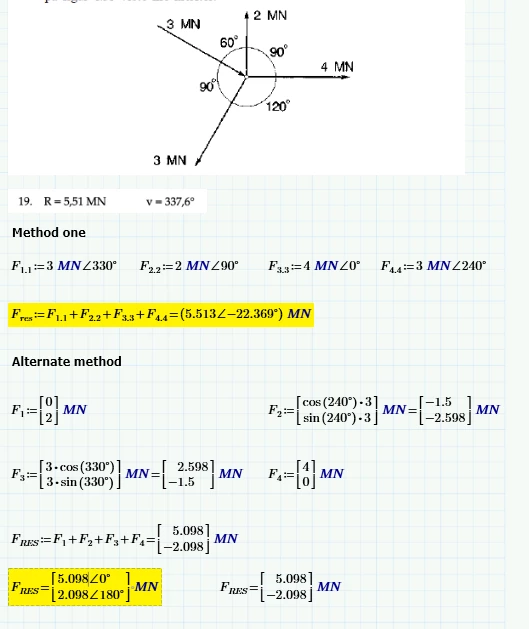 In the picture that I have added to this post there is an assignment where I have added four vectors. In method one i have the lenght and a angle, but can I convert it to a coordinate?