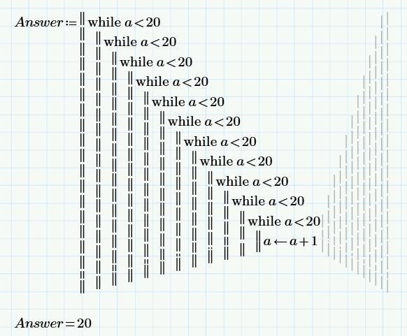I'm attempting to write an optimization  type program. I have 10 nested  while loops, each varying a variable. I get so far into adding the while statements then I get