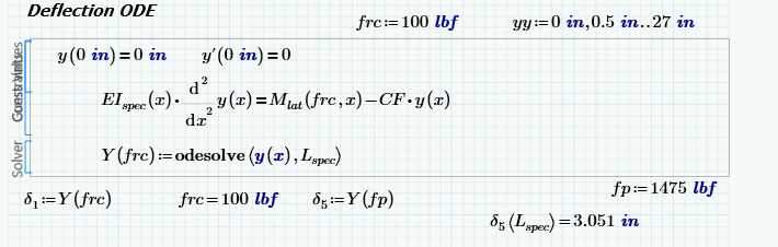 I have a problem solving an ODE. I want to calculate the deflection of a beam, but at the beginning I don't know the force and the force application Point. So I make a guess of it. With a good guess or with iterations (very much work) I can solve it. But because I have many situations like this, I want to do it automatically.