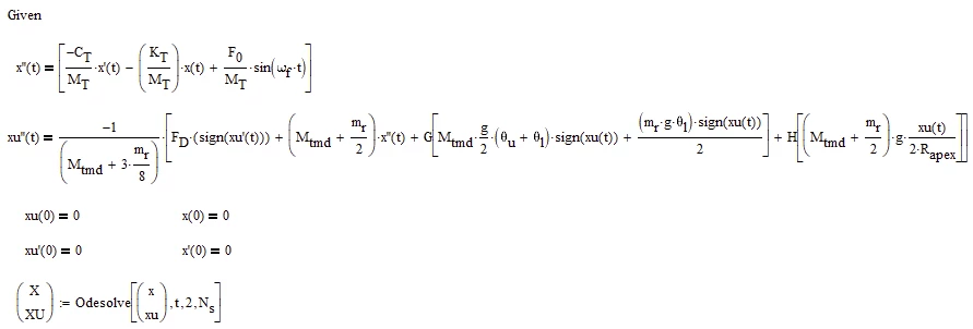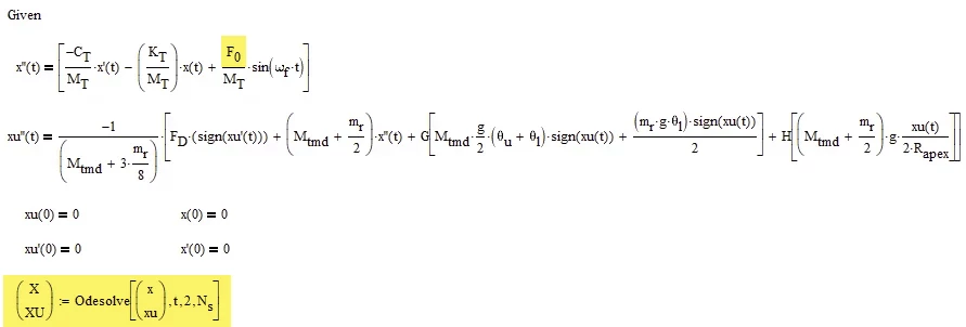The 3rd solve block includes an extra degree of freedom to simulate the tower on which the damper is mounted, which is the aim of the program. This won’t solve either with “too few IC’s”, when I believe I have the correct number for the 2 x 2nd order equations.