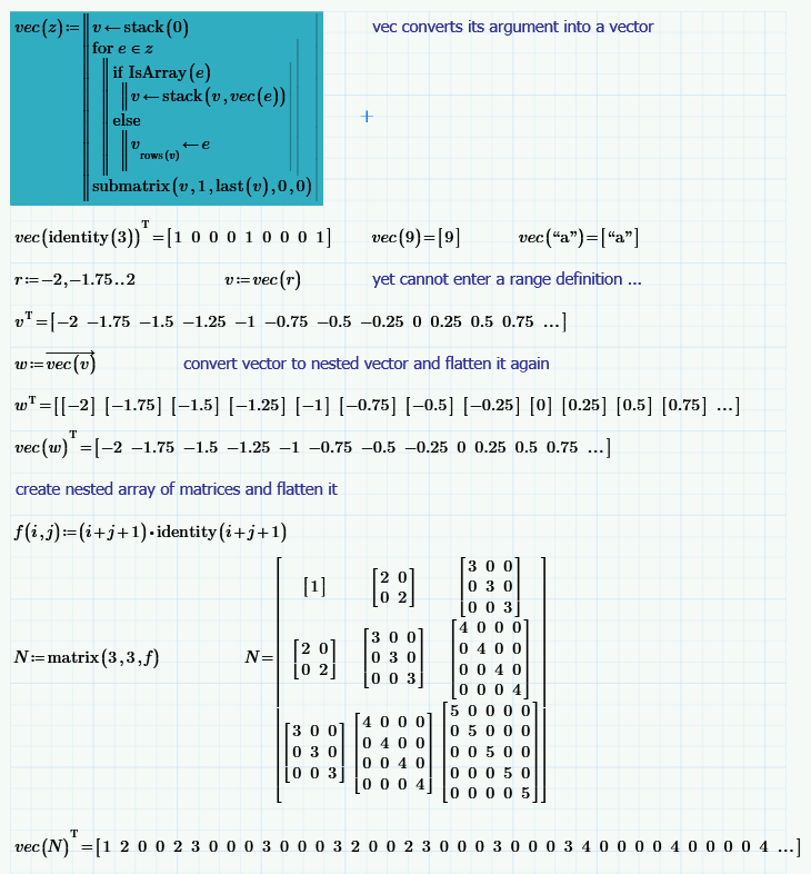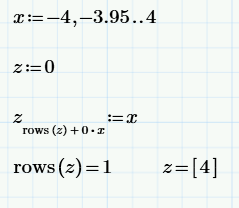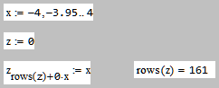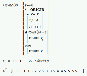 In Mathcad 15, if I want to convert a non-integer range variable to a vector, I can use several techniques, including this: