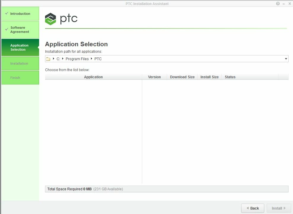 PTC Installation assistant is blank when selecting MathCad application