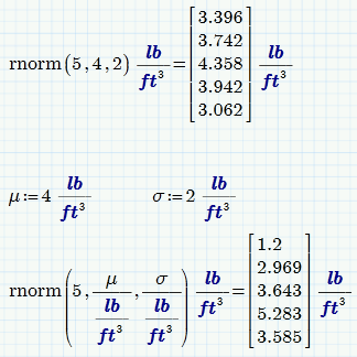 The vector should have (density) units of lb/ft^3. For some reason when I attempt to give the sigma and mu values units of lb/ft^3, the numbers come out incorrect and without the desired units. Where should I look to fix this?