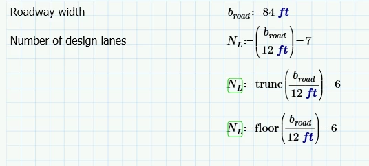 I'm having an issue where I need to do division, then eliminate the decimal portion of the answer and only keep the integer. I've successfully used both trunc() and floor() for this application in the past. But when the quotient results in an exact integer (like 84/12=7 in my example), Mathcad rounds down to 6 instead of returning 7. I'm assuming this is the result of some approximation internal to how Mathcad does division. Like it's really calculating 6.99999999999999... maybe? Are there any work arounds for this? Obviously I can just make the equation 84/12, but this is in a template that I'm trying to make apply to all cases.