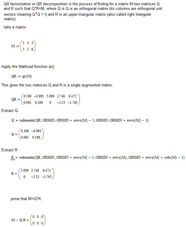 Recall that "QR factorisation" decomposes a matrix A into an othogonal matrix Q and an upper triangular matrix R such that A=Q.R