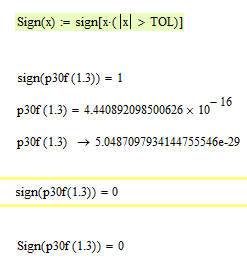 I've used this function for roots testing in a program and I was surprised to discover that thus I missed some, like in the case of p30f in attached, where the output of sign is not 0 (zero), as expected for a root of the polynomial in sign argument.