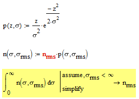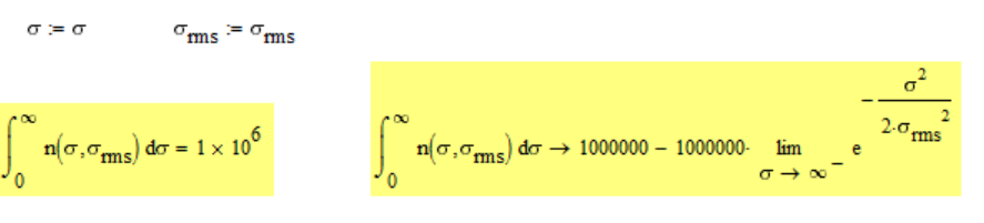I have attached a practical example (a stripped version of a worksheet where I am trying to use the Rayleigh Distribution to compute the fatigue cumulative usage factors caused by a random narrow-band Gaussian vibration on a part, given the rms stress and the number of cycles).