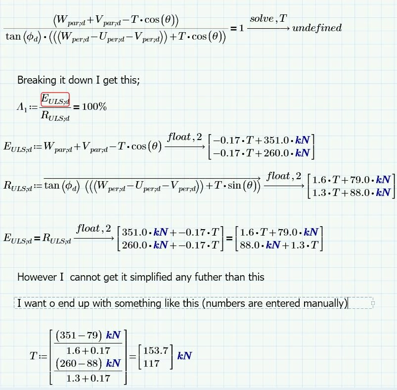 I can partially do it by breaking it down but I get to the final step and cant seem to get Mathcad to rearrange in terms of T.