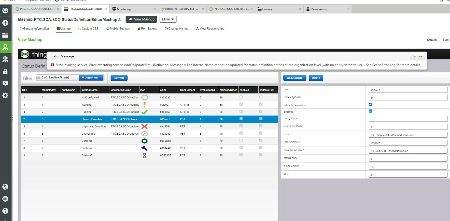 Hello, is there a way to edit the internalName of a KPI equipment status? When I do this I get an error message as shown in the attachment.