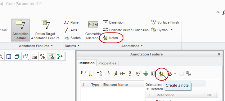 It is important to note that these advanced capabilities are only available in Creo 4.0 for the standalone annotations of the four types noted above. Other types of standalone annotations (such as Notes, Symbols, Surface Finish Symbols) do NOT have these advanced capabilities and the standalone annotations of these types will behave as they currently do in Creo 3.0. We plan to provide the advanced capabilities for these remaining annotation types in Creo 5.0.