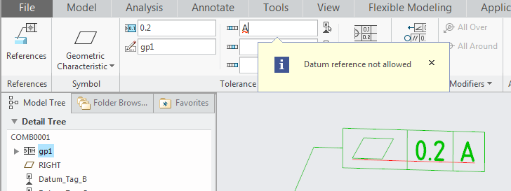 - The syntax checker WILL tell you that you've chosen to specify a datum reference when one is not allowed (see example above)