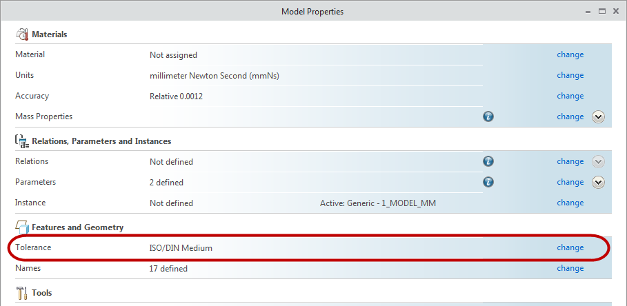 The standard used for the syntax checker is determined in the same way that the standard used for GD&T Advisor will be determined. In Creo 4.0, we are using the Tolerance Standard option that is found under the Model Properties dialog. If you'd like to use the ISO 1101-2012 and related standards, choose the ISO/DIN option. If you'd like to use the ASME Y14.5-2009 and related standards, choose the ANSI option.