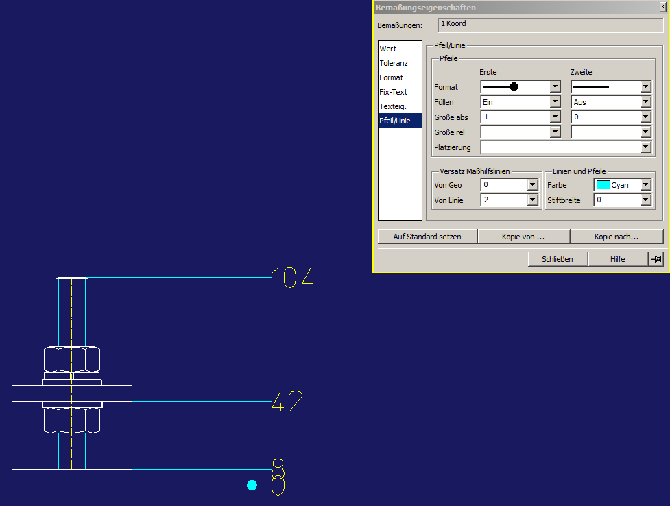 Ich würde gerne von einem Nullpunkt ausgehend kleine Aufbaumaße auf Kanten in Zusammenstell-Zeichnungen eintragen.