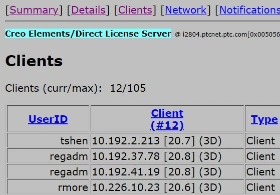 Customers want to Creo Elements/Direct license server interface show name of user account (same as user Windows log-in name) in Clients tab when client PC using Creo Elements/Direct Modeling (Default show Computer name and ID )