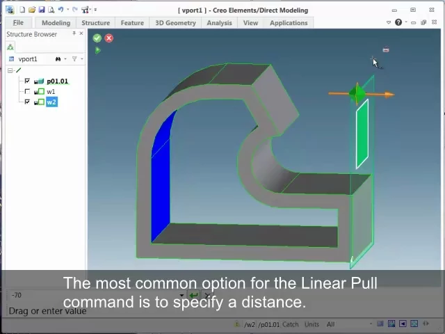 This video demonstrates some options to the Pull Linear command. This includes the Type (Distance) options and some options for specifying Direction. The demonstration uses version 18.1, although it is applicable to version 17 as well.