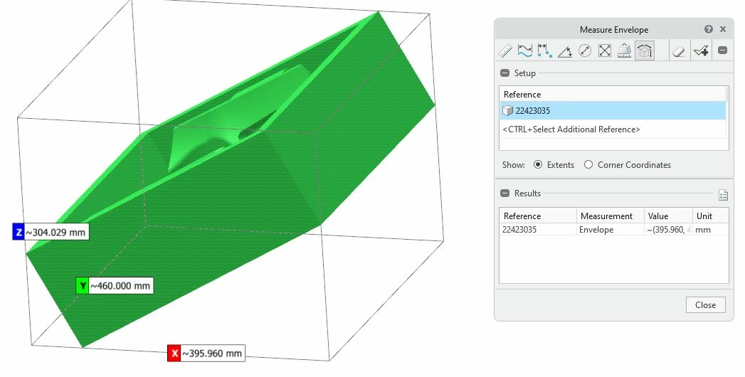 I'm not an expert Creo View user and I'm trying to find a way to obtain the minimum-size enclosure that contains a Creo part or assembly (or imported STEP files). In Creo Parametric you can set the Enclosure feature to "optimized" (from 11.0) or orient it according to a selected CSYS.