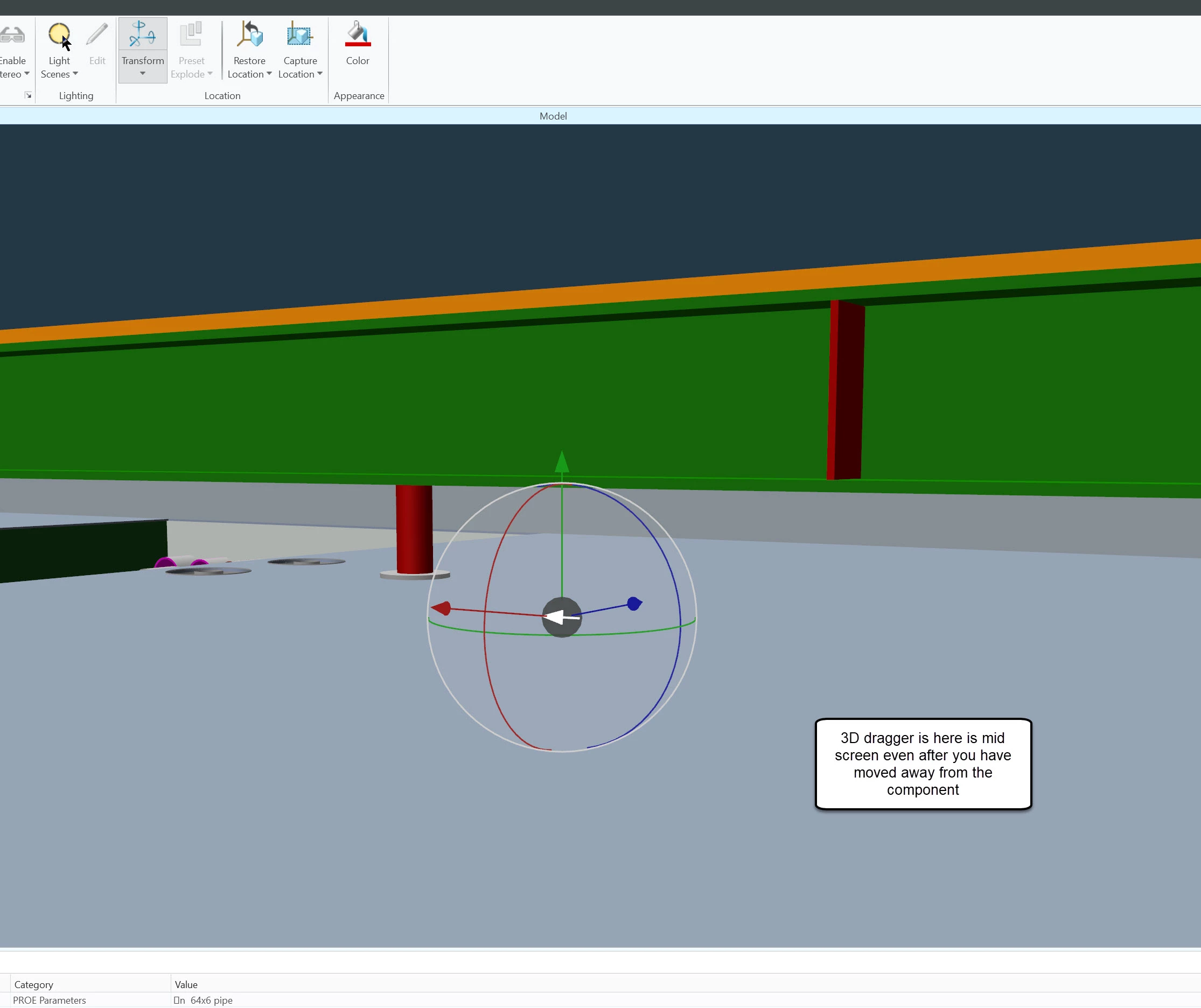 is there a setting in CreoView to make the Section 3D Dragger to be in the Viewing Screen.