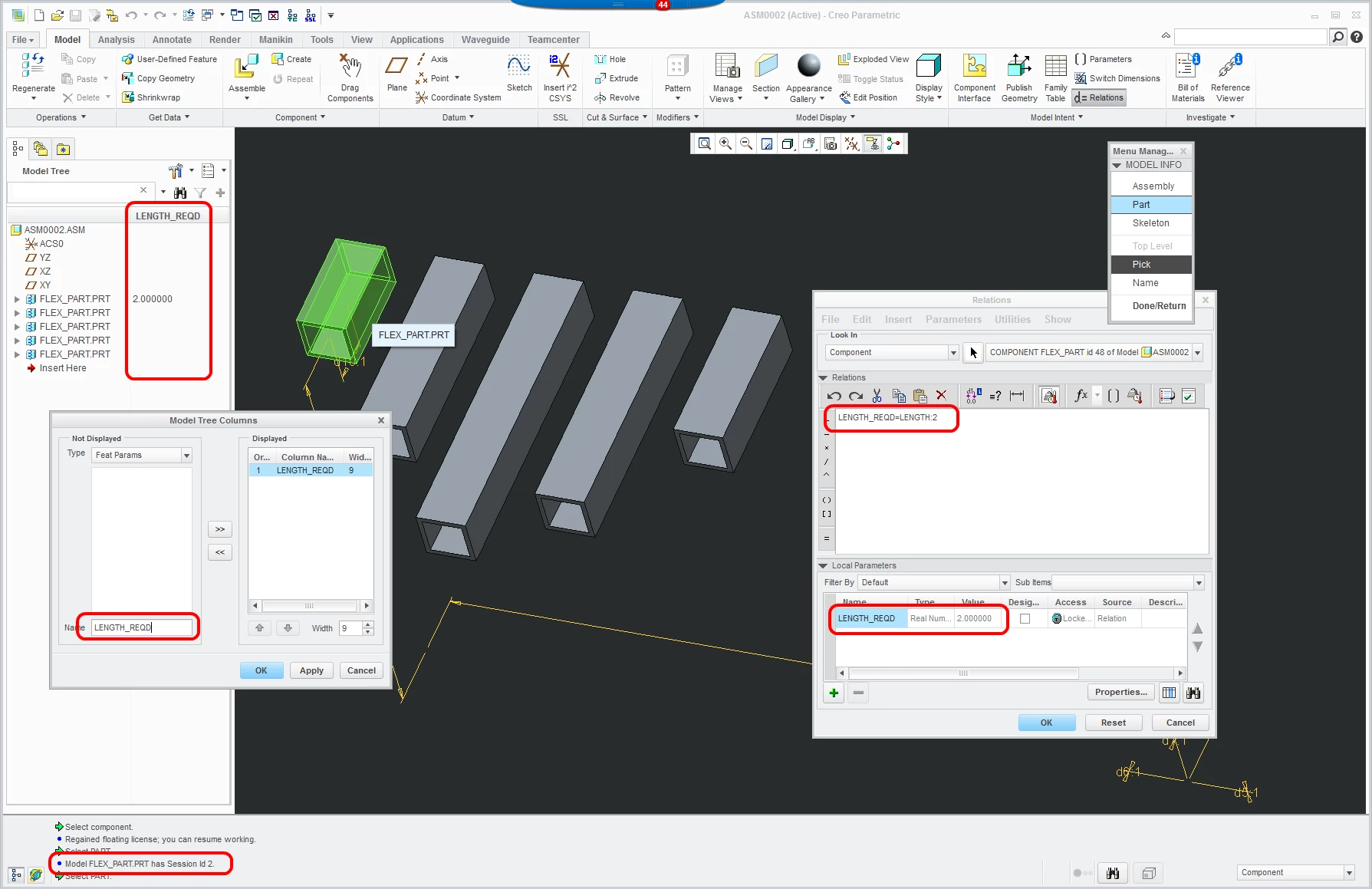 I think we may have stumped PTC on this one, so I'm turning to you guys. We have assy's that use hundreds of occurrences of a flexible model. In the end, we like to determine the total length of the models req'd for the assembly. So far, we've managed to show each length for each occurence by writing a short relation. Trouble is, that relation is dependent upon the session ID of each component, so it becomes a manual and unrealistic endeavor. I hope the attached graphic of a simplified example is enough to describe what we're trying to do, and illustrate the problem.