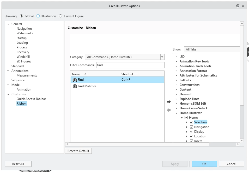 I just upgraded to Creo Illustrate 10 and I'm having a hard time searching for parts. Anytime I try to do Ctrl + F to find a part nothing happens! I tried adding the Find Function to my quick access toolbar and its totally greyed out. Any ideas what I could do to fix it?
