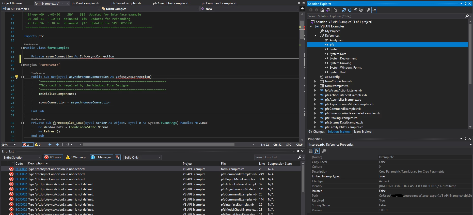 I have Creo Parametric 7.0.2 Educational version on Win10 with Visual Studio 2019 (16.10.3). I wanted to try VB API and have set-up everything as per vbug - I have registered the COM and the PRO_COMM_MSG_EXE is set as system-level variable to a working path.
