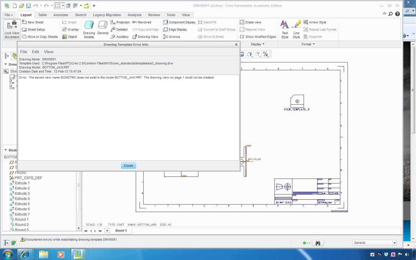 When we first installed Creo Parametric on our school system it wasn’t set up to BS8888. Unfortunately a number of our students produced parts for their final projects. We have now set up all PCs to BS8888 but when students open parts that were designed on the old settings they are not in BS8888 (even though if they start a new part they are to BS8888). I have found out how to change the parts from inches to mm but the real issue occurs when they attempt to produce drawings. The isometric view is missing.
