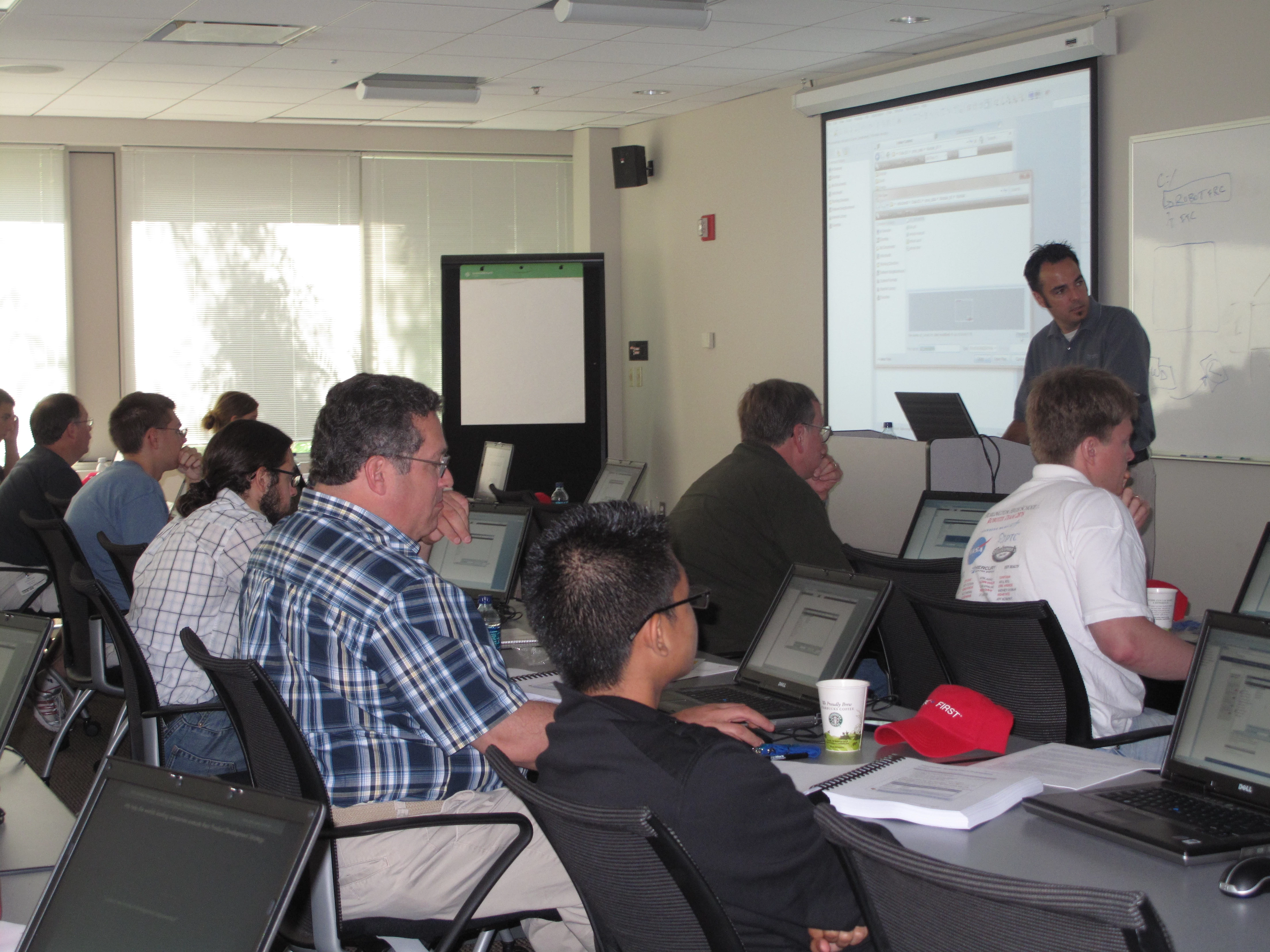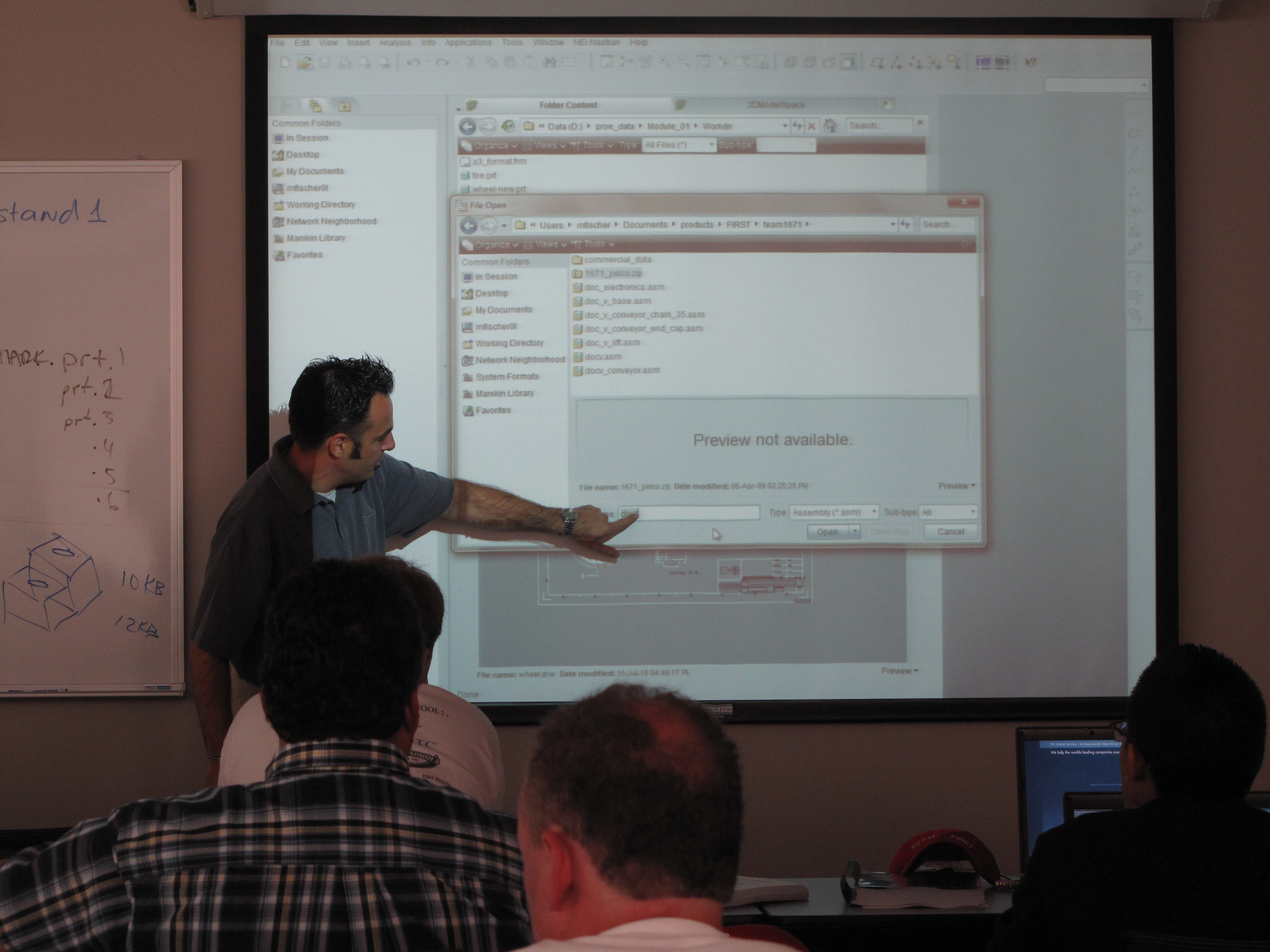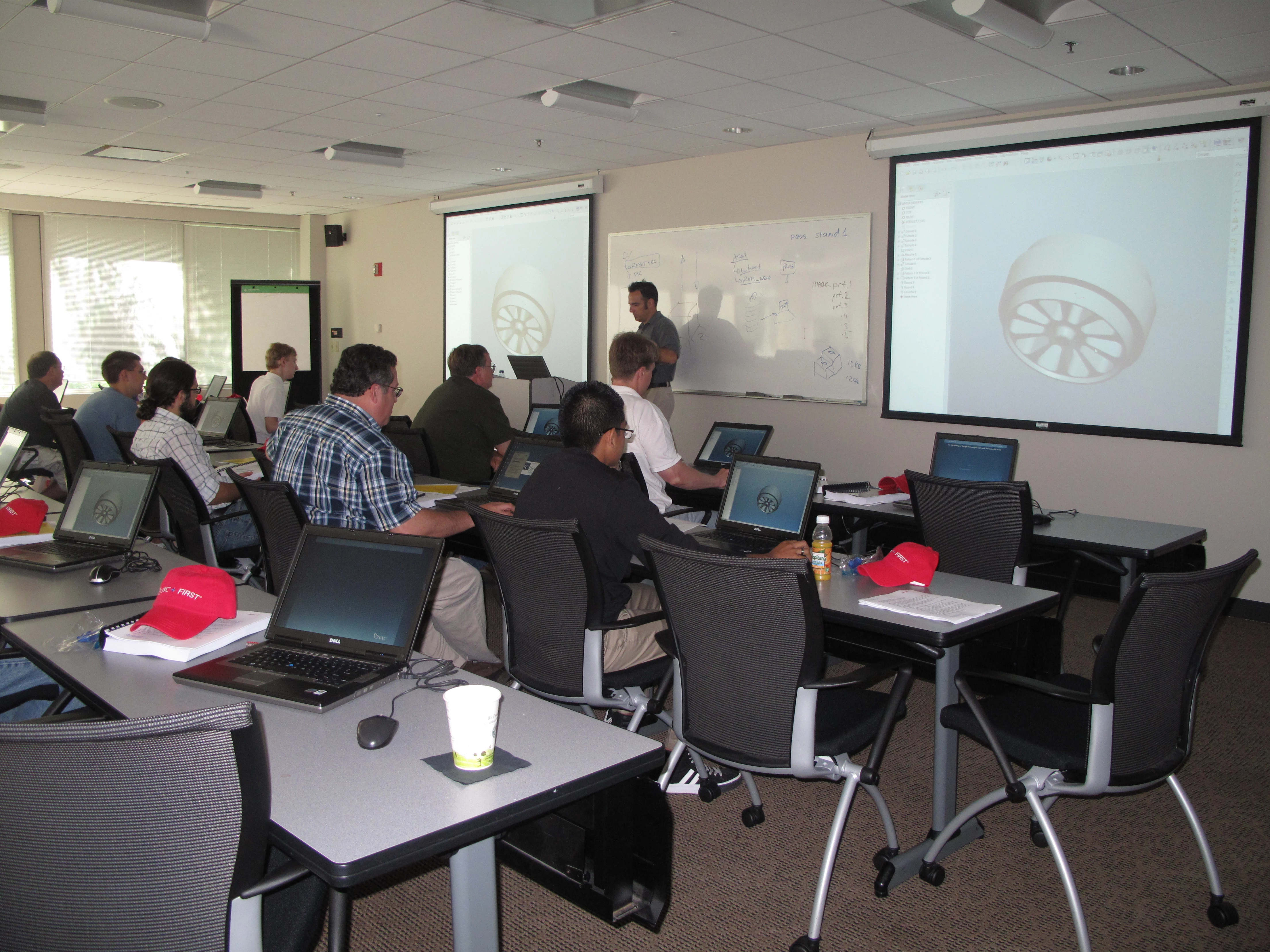 Today is Day #1 of a 2 day Hands-on-Workshop for FTC and FRC teams. We have 23 attendees: 65% students, 35% mentors from six teams from MA and CT. The Hands-on-Workshop curriculum has been updated for Wildfire 5.0. The first day is all about Pro/ENGINEER fundamentals and we will also have an hour breakout on Mathcad and Windchill ProjectLink. The second day will be focused on applying the fundamentals to robotics, and some more advanced Pro/ENGINEER principles will be introduced. So far, this model seems to really be working out!