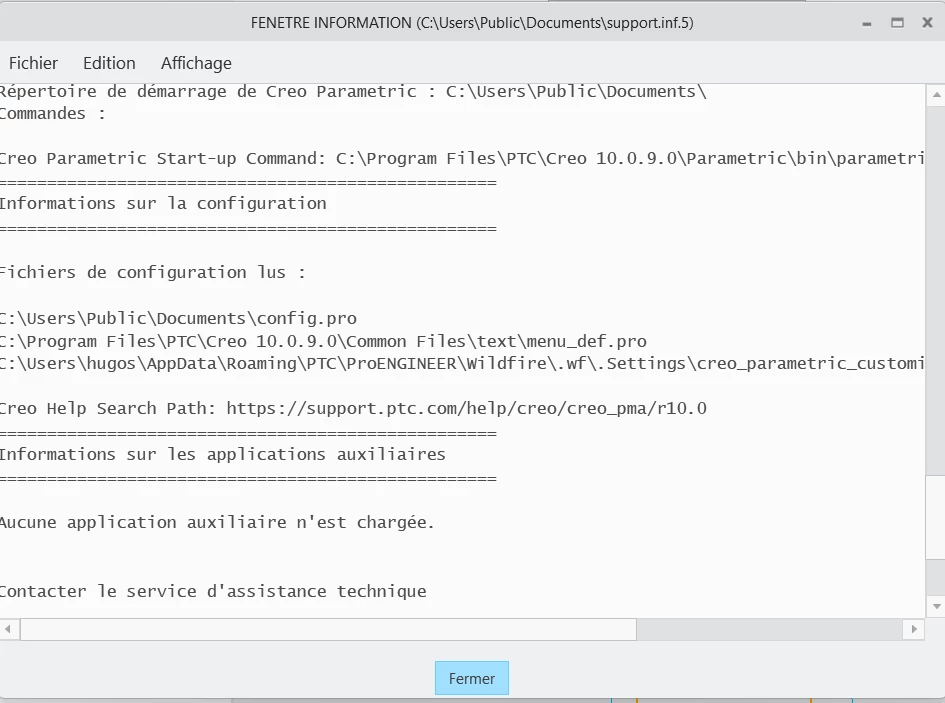 C:\Users\hugos\Documents\PTC\Creo10.0\config.proFichier actuellement lu selon Fichier → Aide → Informations système :