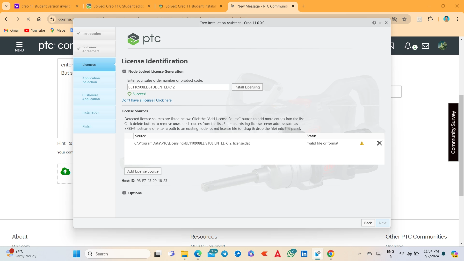 MMM_111743541-VisitorForum|Forum|1 year agoJuly 2, 2024Questioncreo 11 install licensingForum|Forum|1 year agoJuly 2, 20242 replies926 viewsenter your sales order number or product code is got success.But sources status is showing invalid file or format. it is creo 11 student edition.Creo Student Edition
