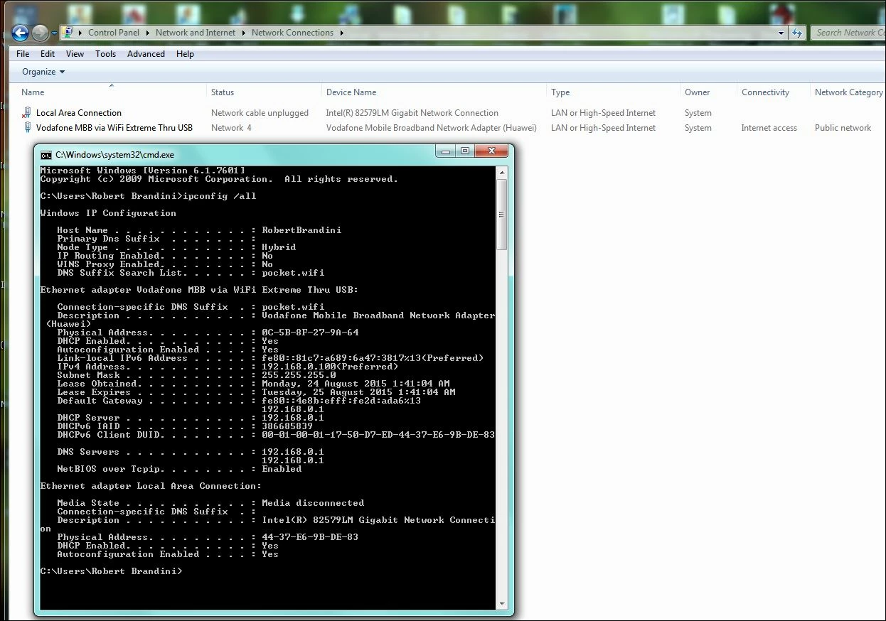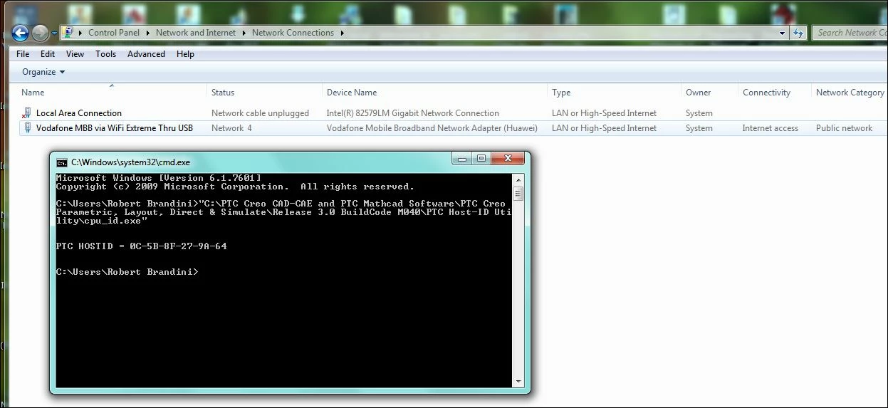 I have an internal "wired" network card installed in my desktop PC which I do not use for internet connection. My internet connection is achieved via a WiFi modem which is connected to my PC via USB (my PC lacks WiFi capabilities so I use this method which works great - except for last week when it was malfunctioning for the first time ever but is now all fixed). --> Please refer to attached screen shots for my standard normal internet connection and network card details & related PTC Host ID's...