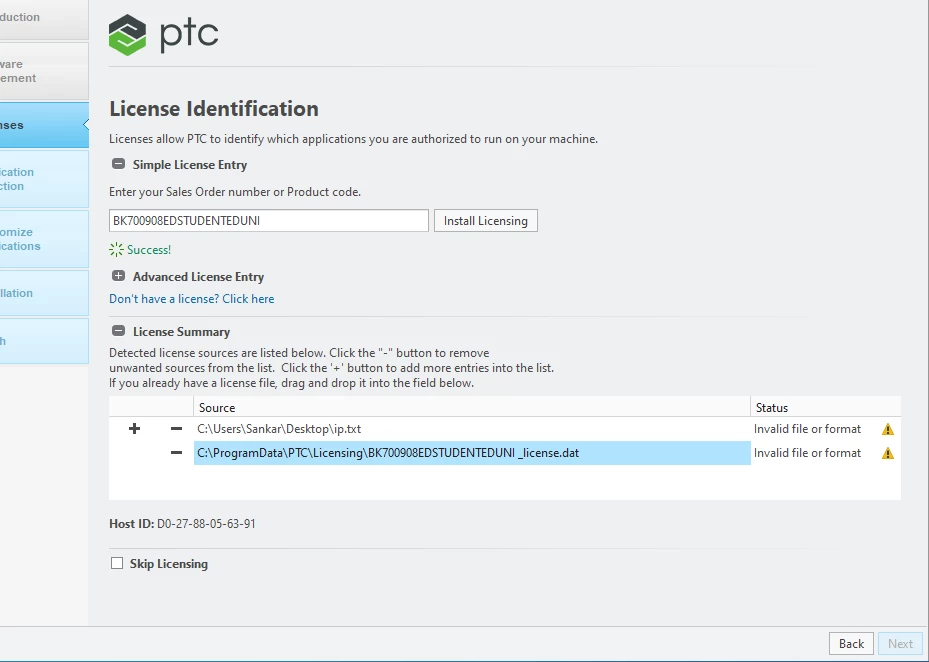 Possible solutions for "Invalid file or format" status under License Summary while installing Creo: https://www.ptc.com/en/support/creo-admin-troubleshooter/other-symptoms/invalid-file-format