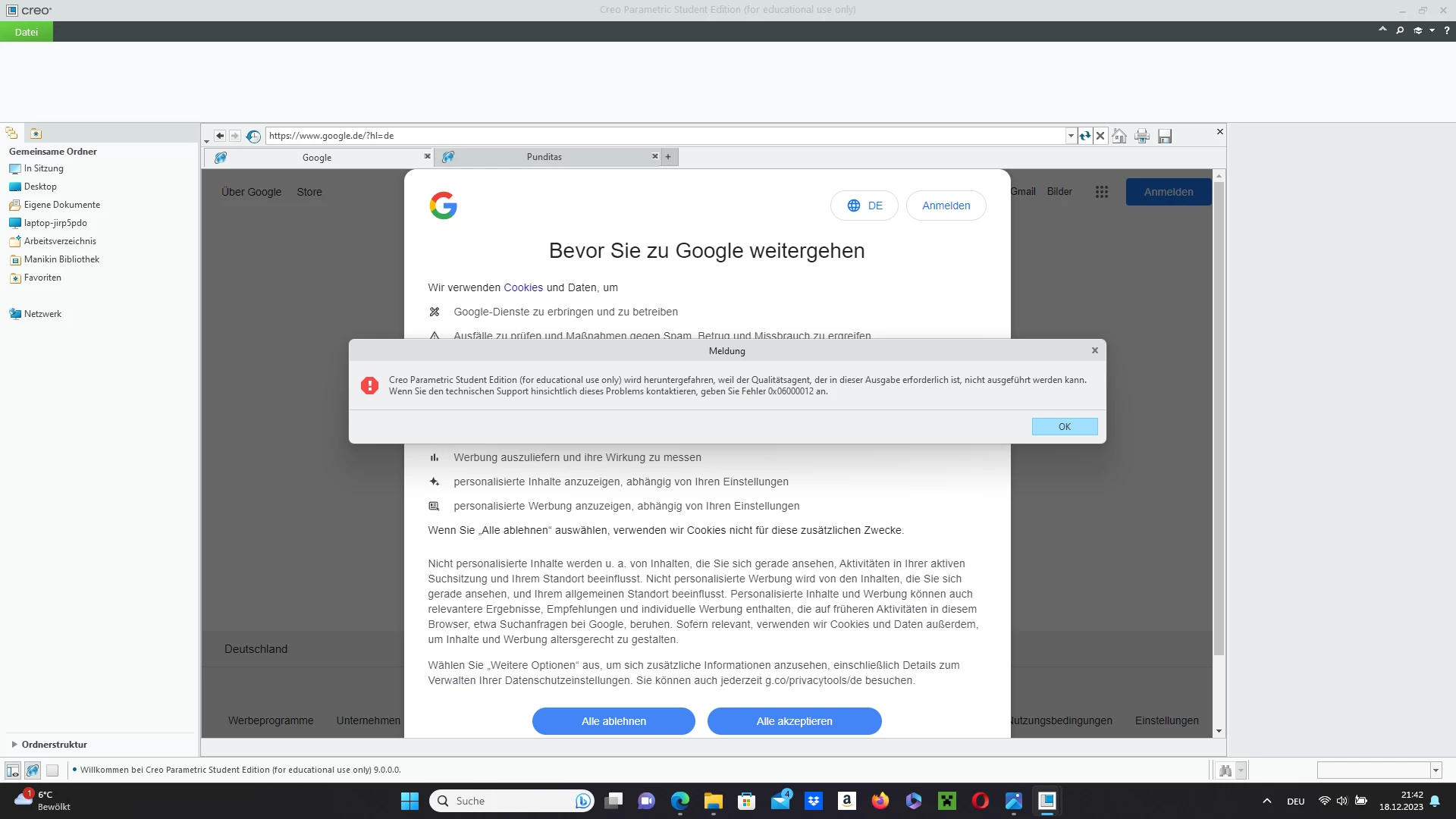 Error Code 0x0600012 when starting Creo9.0.0.0 Student Edition