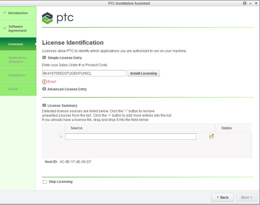 Error on liscense