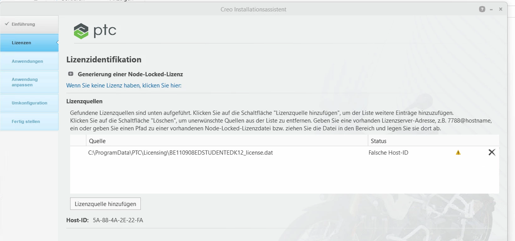 I have the following problem I get a license from PTC. after the restart the license does not work anymore: โWrong Host-IDโ The function rendom MAC is actually deactivated.